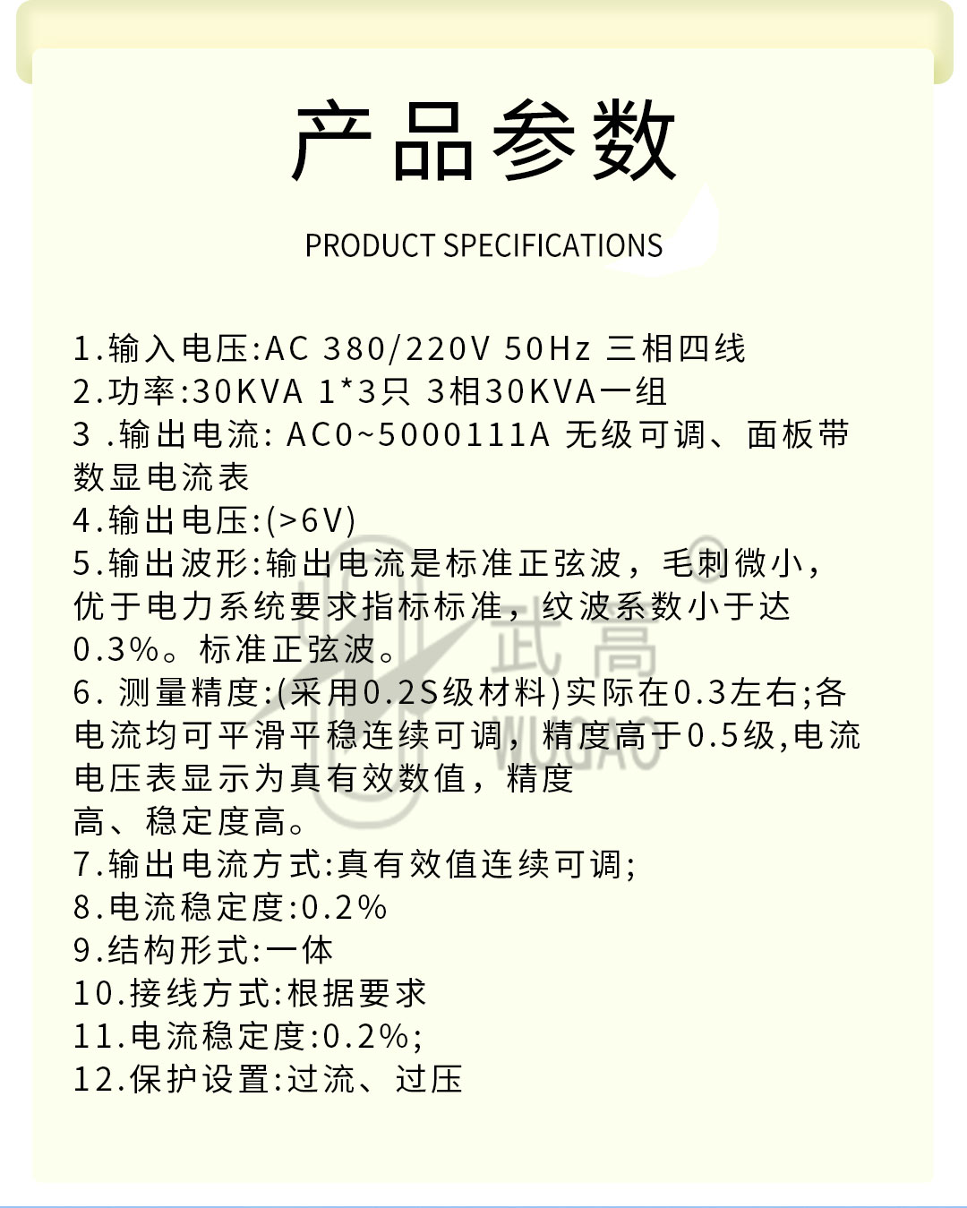 3 .輸出電流: AC0~5000A 無級可調(diào)、面板帶數(shù)顯電流表